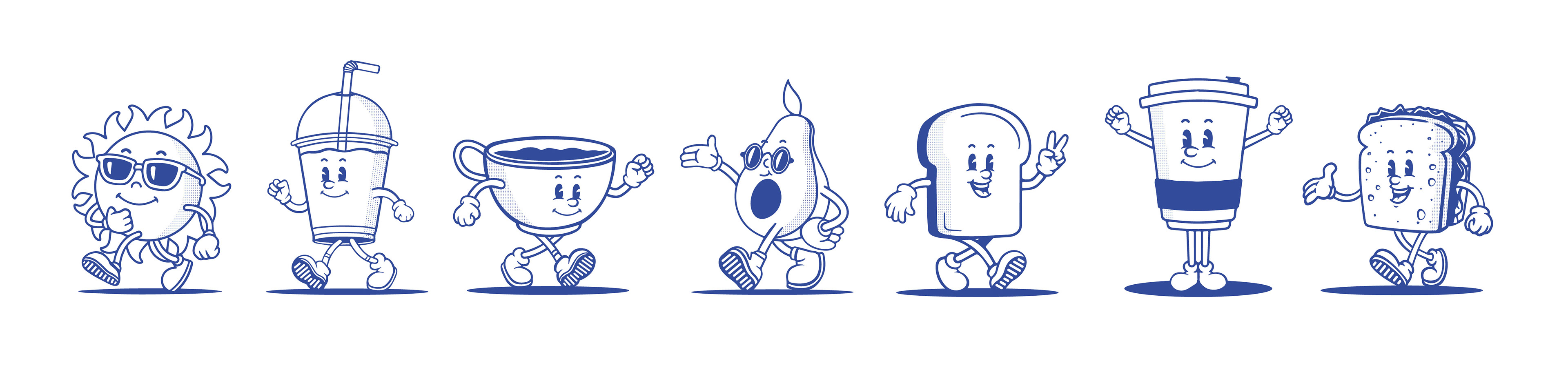 Creating a suite of digitally drawn mascots for the Brunswick based Cafe in Melbourne. I later went on the create prints for T-shirts and Tote bags to have in-stock in the shop and online.