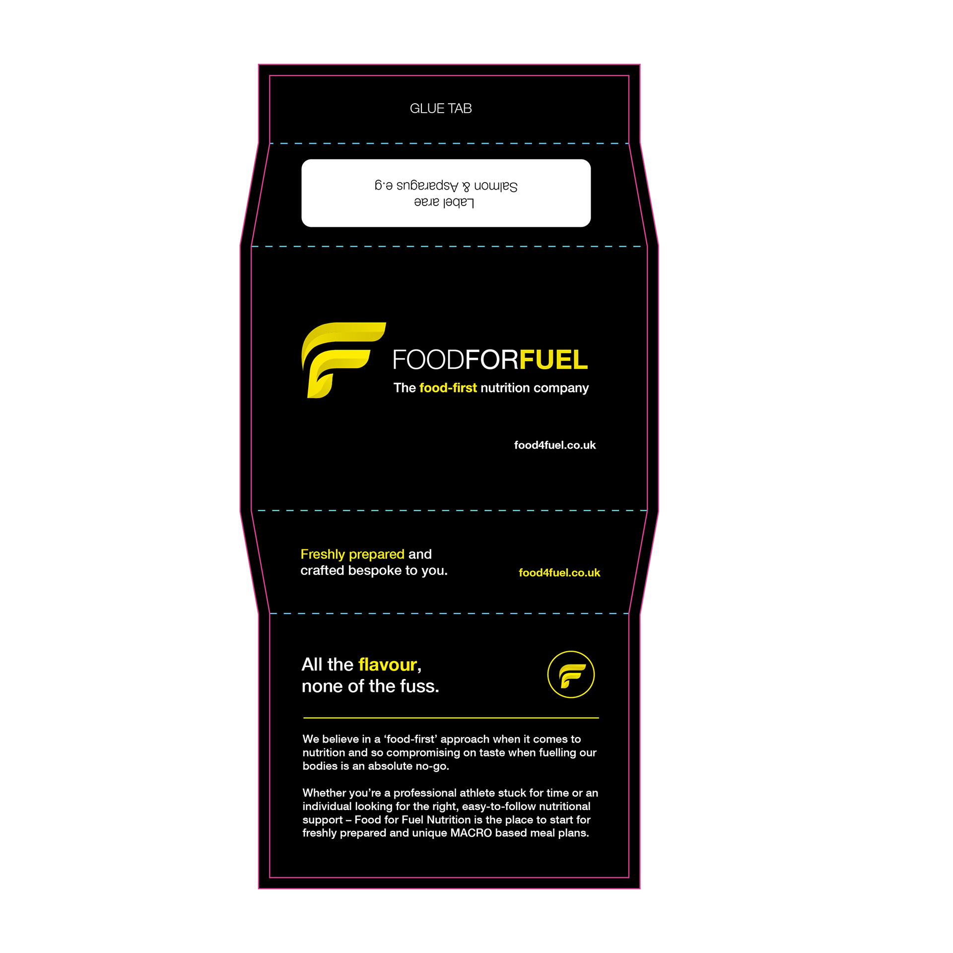 Tasked with creating the identity for the new macro meals supply company Food For Fuel Nutrition, I designed their logo and wrote their supporting strap line. I then moved on to create their full suite of packaging and marketing materials.